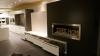 Compleet ingerichte showroomkeuken met eiland en TV kast met inbouwhaard
