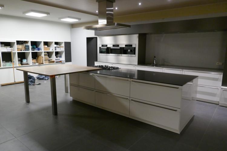 Compleet ingerichte showroomkeuken met eiland :