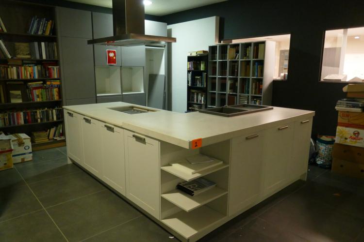 *Keukeneiland met schuiflades, dubbele uitgietbak en werkblad in keramiek - afmetingen : deel 1 L182xB99xH93 / deel 2 L226xB99xH97 cm