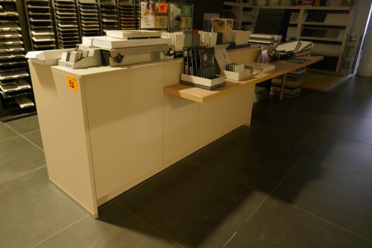 Houten witte kast met 4 draaideuren en aangebouwde tafel
