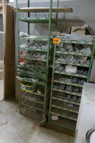 Groenmetalen rek met allerhande bevestigingsmateriaal ( zie fotos )