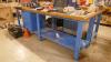 Blauwmetalen werkbank met 3 schuifladen en bodemschap