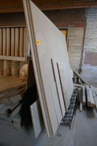 Stalen platenbok met houten meubelplaten en houtresten