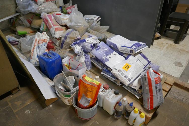 Zakken cement - pleister - zand - steentjes - bidons - enz…( zie fotos )