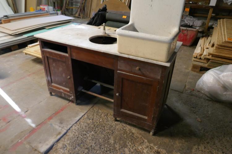 Vintage collector items : wastafel - lavabos - stalen bovenblad Leuvense kolenkachel