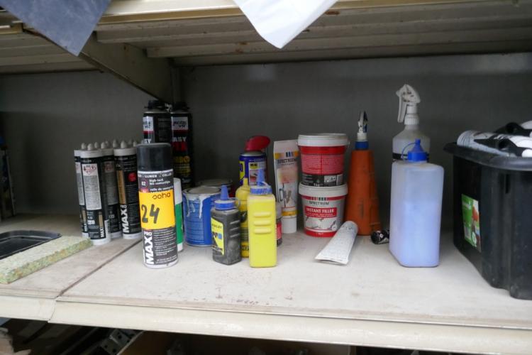 Diverse producten : montagelijmen - contactlijmen - vulmiddel - silicones - bidons - schildermateriaal - enz…