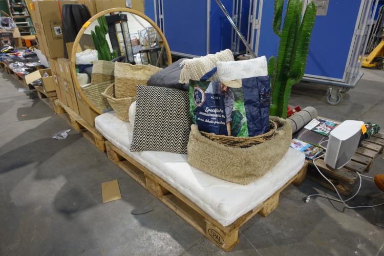 oa: houten spiegel, kindermatras, kussens, decoratieve manden,...