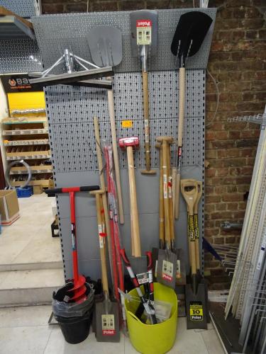 Schop, spade, grondboor, hamer ...