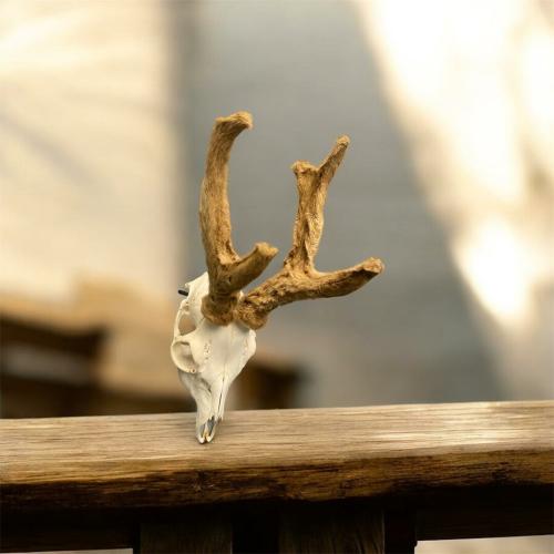 Ree - Schedel met gewei met bast