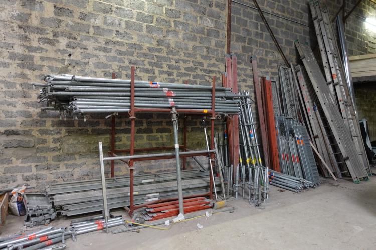 plm 26 vloeren, plm 70 lange liggers, plm 40 kortet liggers, plm 20 staanders, + 4x loopbrug