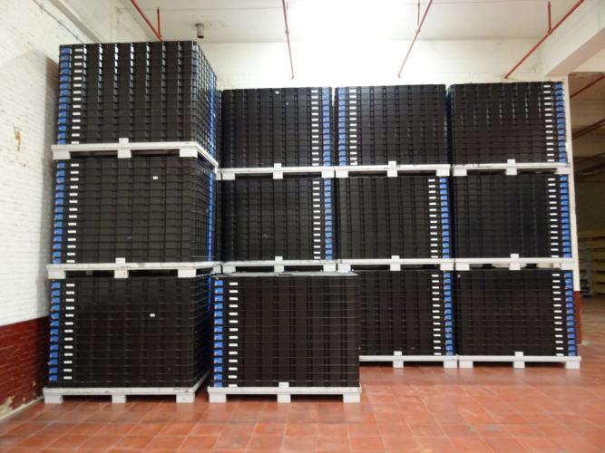 12x Metalen houder met kunststof transportboxen