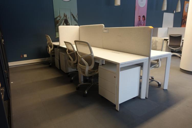 Bestaande uit 6x verrijdbare stoel, 6x ladenkast, akoestisch scherm en bureau (totale afm: 3,6m x 1,20m) per opstelling , locatie: gate 39