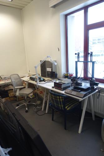 oa: dossierkasten met diverse elektronische inhoud, 3D printer (vermoedelijk na te zien), elektrische componenten, divers materiaal (alles moet mee, exclusief lot 972 tem 977) , locatie: gate 39
