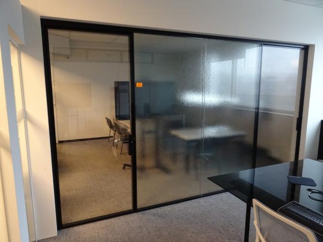 vv aluminium omkadering met deur en schuifdeur, 4180x2400 , locatie: Bureau IT