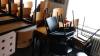 alles van het 1e verdiep, oa: diverse tafels, stoelen, electonica, metalen kasten, kunst,... (de zetel op het 2de verdiep)