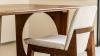 4 stuks Eetkamerstoel in walnoot afwerking en hoogwaardig beige stof, Ongeopende verpakking (1 per verpakking) afmetingen zie foto