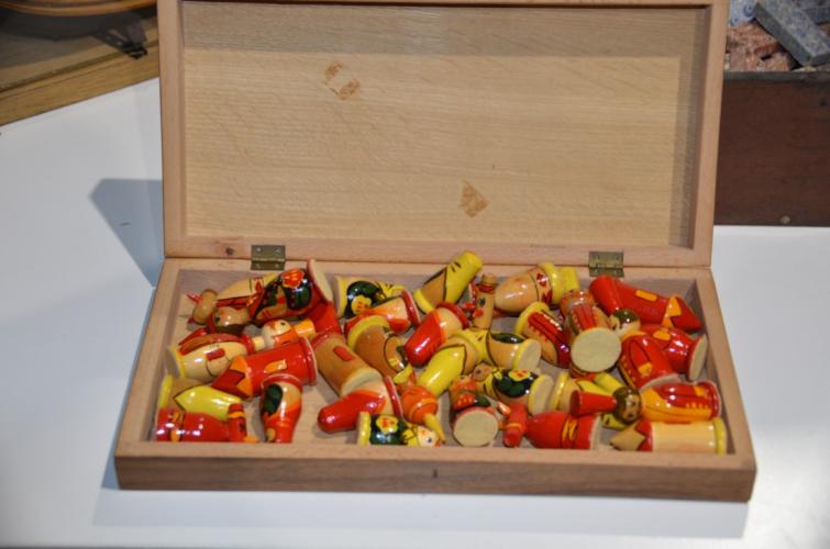 Houten dambord met diverse figuurtjes
