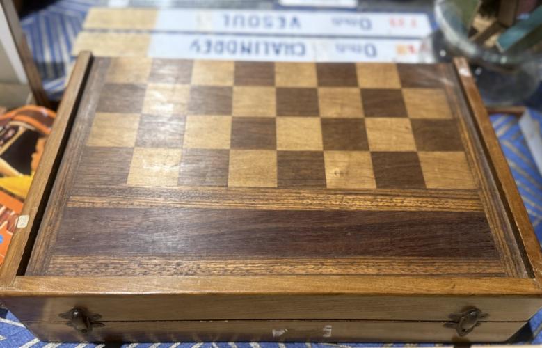 2-in-1 houten speeldoos Backgammon/dammen