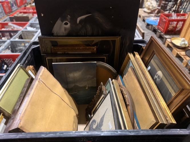 Inhoud bak diverse schilderijen en kaders