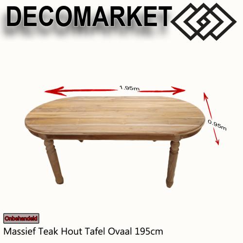 onbehandelde teak hout tafel, afmeting: 1950x950 met een ovaal tafelblad