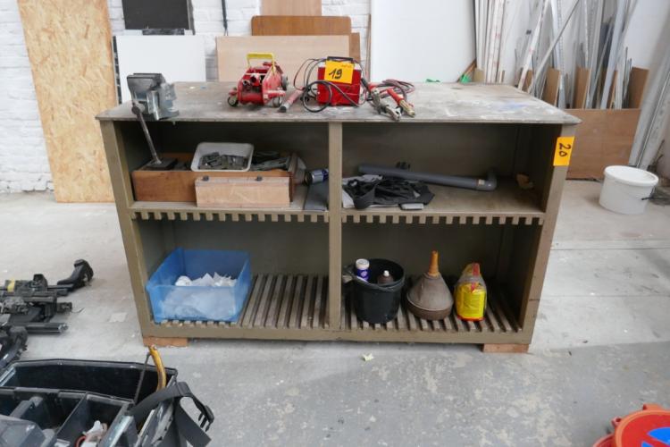 Stalen werkbank met opbergruimte en bankschroef ( met inhoud )