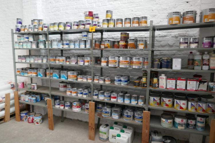 Rek Met Diverse Gebruikte Potten Verf En Dergelijken