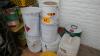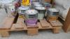 3 palletten met gebruikte en ongebruikte potten verf en dergelijken