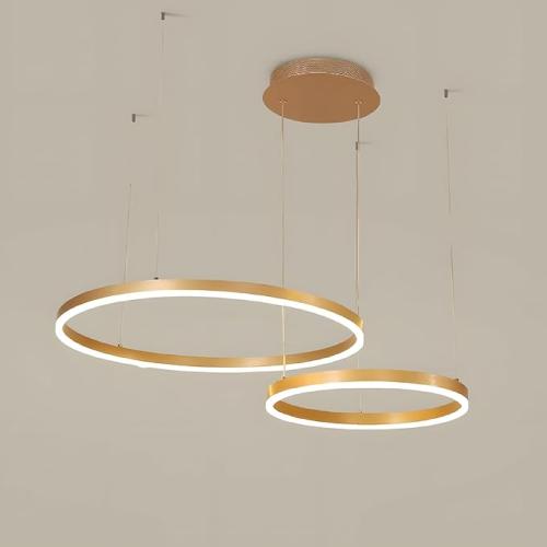 Minieme gebruikssporen, getest en werkend, ok, remote ontbreekt, Moderne DIY Cirkel LED-Kroonluchter | 2 Goud Ringen:40+60cm=40W | Metaal + Acryl LED-Hanglamp | 2.4G Dimbare Afstandsbediening | Ronde Plafondhanglamp Woonkamer Slaapkamer Eetkamer Keuken, B0CNZNTFR2