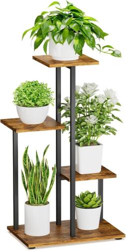 Ongeopend, in seal, iDavosic.ly Metalen plantenstandaard met 4 niveaus, plantenrek, bloemenrek, voor binnen en buiten, bloemenstandaard, voor tuin en balkon, zwart, B0D9V7WN7Q