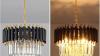 Ongeopend, in seal, Seenvlog Moderne LED kristallen hanglamp, zwarte en gouden kristallen kroonluchter, 3-laags druppelvormige kroonluchter, plafondlamp voor de eetkamer, D40cm E14x4 LED-lampen, B0C5T4B24Z