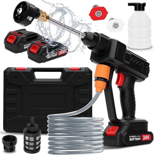 Gebruikssporen, getest en werkend, volledig, ok, Draadloze hogedrukreiniger, draagbare accuhogedrukreiniger, 6-in-1 multi-sproeier met 2 oplaadbare accu's, 5 m slang voor auto's, ramen, gazon, tuin en zwembad, B0F5WS9X4X