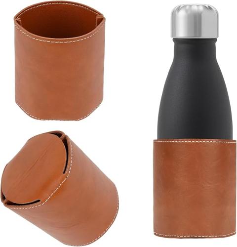 Ongeopend, Linkidea 2-delige waterflesbeschermer (bootje) compatibel met S'well ORIGINAL 9 oz, BJPKPK 12 oz, MIRA Cascade 12oz colaflessen, veganistisch leren bodembeschermer (bruin), B0F4WZZPKH