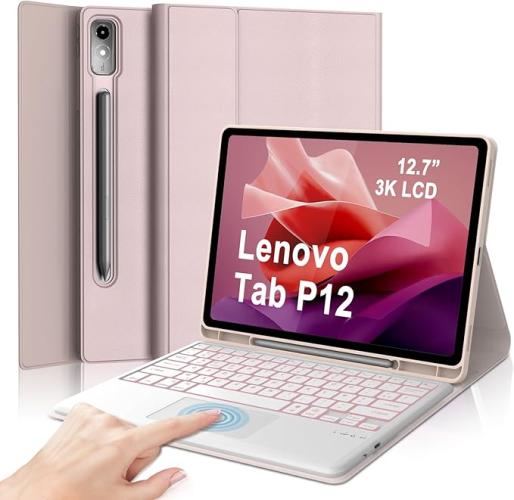 Ongeopend, Beschermhoes voor toetsenbord Lenovo Tab P12 12,7 inch 2023, toetsenbordhoes met 7 kleuren, achtergrondverlichting, AZERTY, Frans, Bluetooth-lay-out, draadloos, afneembaar, B0DZNCK92G