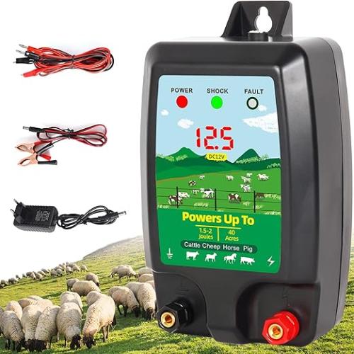 Minieme gebruikssporen, getest en werkend, volledig, ok, verpakking ontbreekt, Warmfay Afrasteringsapparaat 12 V met led-display, elektrische herdershond 2J output voor 10 km bereik, waterdicht elektrisch hek voor bescherming van boerderijen, huisdieren, gevogelte, weide, tuinen, B0DSVSZ1KM