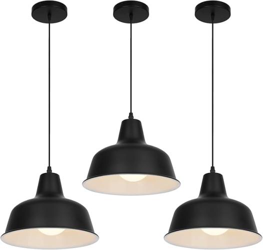 Ongebruikt, getest en werkend, volledig, originele verpakking ontbreekt, ok, VONCI Zwarte Industriële Hanglampen Vintage Boerderijstijl Metalen Hangende Plafondlampen voor Schuur, Keukeneiland, Eetkamer, Woonkamer, Restaurant, Bar, Entree (3-pack),B0BQQXWRV6