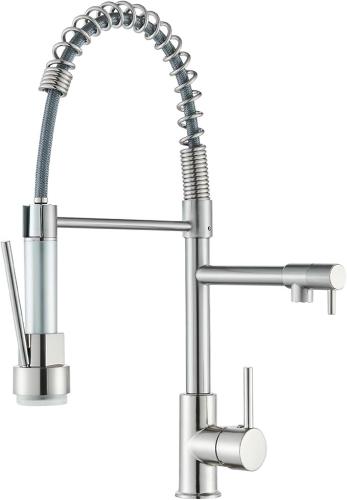 Ongebruikt, volledig, ok, Saeuwtowy 3-kleuren LED-keukenkraan met flexibele en intrekbare 360° draaibare douchekop en sproeier met dubbele functie, duurzame messing afwerking en geborsteld oppervlak,B07P9QWML5