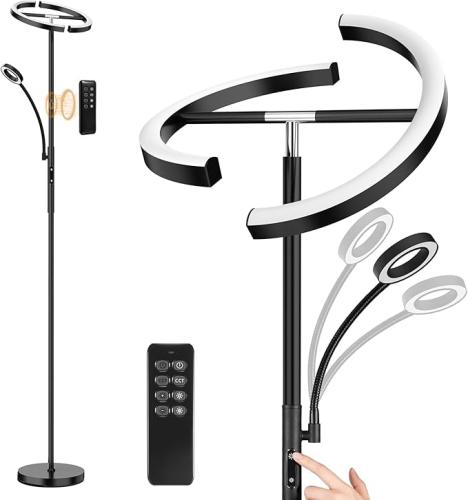Minieme gebruikssporen, getest en werkend, ok, ANTENLICHT KAKA|Staande lamp, LED, dimbaar, zwart, 20 W, met flexibele 7 W leeslamp, moderne uplighter met 4 kleurtemperaturen en afstandsbediening, voor woonkamer, slaapkamer, kantoor, B0D83M1TP2