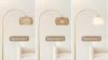 Ongebruikt, getest en werkend, Rayofly Gouden Booglamp, Moderne Vloerlamp met Rotan Lampenkap, Boho Vloerlamp met Afstandsbediening en LED-lamp, App Bediening, Dimbare Vloerlamp voor Slaapkamer en Kantoor, B0D8PTN85K