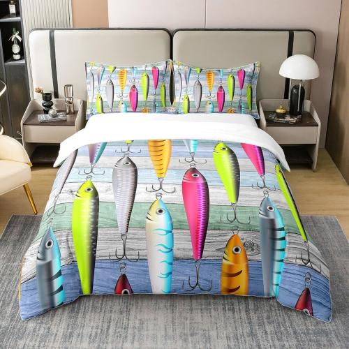 Ongeopend, Kleurrijke vis 100% katoen dekbedovertrek 135 x 200 cm, vishaken , B0CD7QF18N