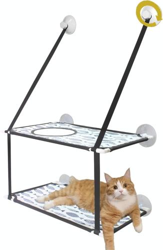 Ongeopend, ok, Peticularz Dubbellaagse hangmat met elritzen-motief, katoenen linnenweefsel, vensterplaatsen tot 25 kg, kattenbed met stabiele glasvezelbuis en schroefstangzuignappen, B0CHQN81CN