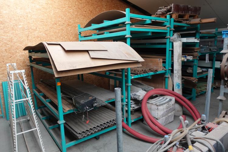 2,5m lengte, 1,5m breed, met wielen aan 1 zijde, inhoud divers materiaal inclusief