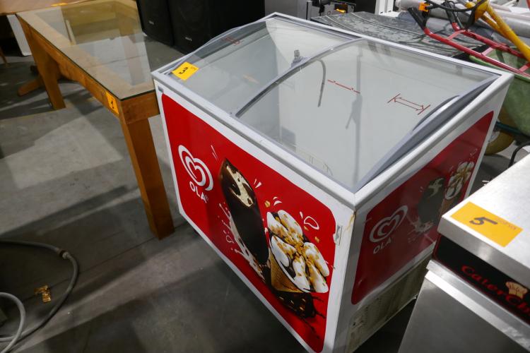 Verrijdbare vrieskist met schuifdeksels ( reclame OLA )