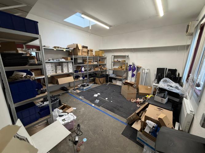 locatie: 2de verdiep, inclusief rekken, oa diverse printers, laptoptassen, inktpatronen, monitors, kabels, it-diversen, ... kartonafval moet niet mee.
