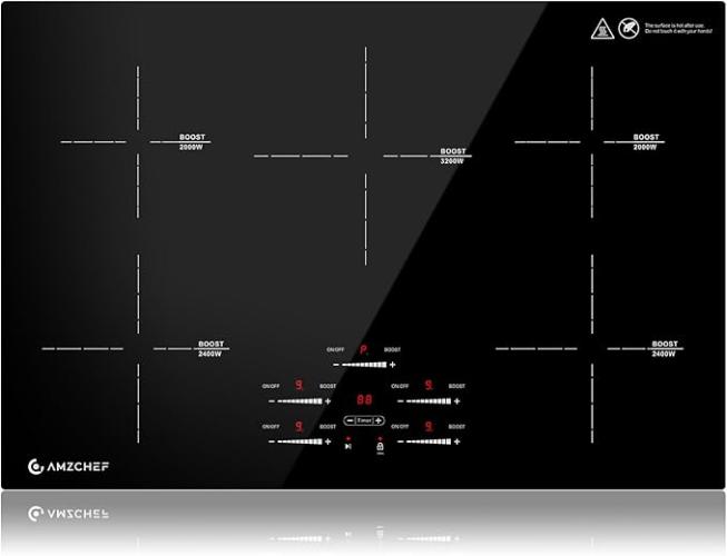 Ongebruikt, getest en werkend, ok, bevestiging ontbreekt, AMZCHEF Inductiekookplaat (80 cm), inbouw inductiekookplaat, 5 zones met booster en 9 niveaus, pauzefunctie, warmhouden, sliderbediening, timer, veiligheidsslot, 9500 W, B0DK4XR3KH