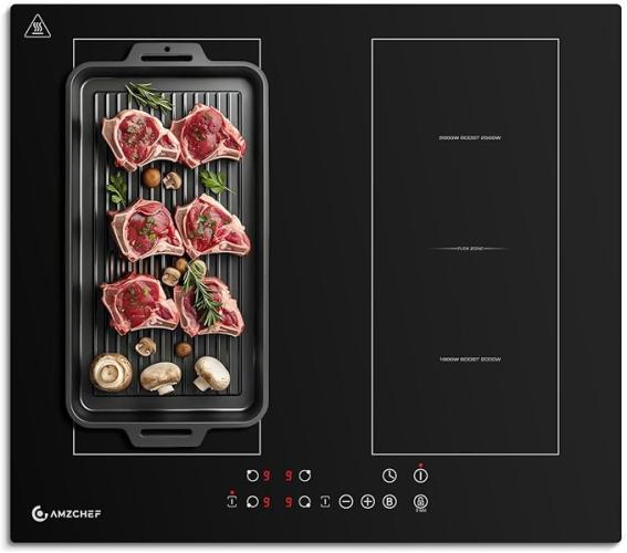 Ongebruikt, getest en werkend, volledig, ok, AMZCHEF inbouw inductiekookplaat (4 zones), 60 cm met twee flexibele zones, boost-functie en 9 vermogensniveaus, timer, veiligheidsvergrendeling, oververhittingsbeveiliging, BBQ, 7200 W, B0DB58MM3J