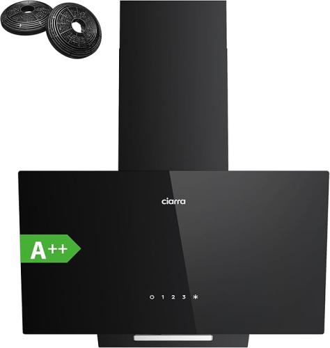 Ongebruikt, getest en werkend, volledig, ok, Ciarra CBCB6750C klasse A++ wandafzuigkap, schuin, 60 cm, 350 m³/u, 3 snelheden, recycling- of afvoermodus, inclusief koolstoffilter CBCF002, touch-bediening, zwart glazen paneel [Energieklasse A++],B0DQTPW7QG
