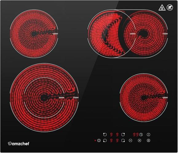 Ongebruikt, getest en werkend, volledig, ok, AMZCHEF Keramische kookplaat (60 cm), kookplaat 4 kookplaten 6600W met 9 standen, dual-zone en braadzone, ingebouwde kookplaat met automatische uitschakeling, timer, veiligheidsvergrendeling, B0D94DGZ5L