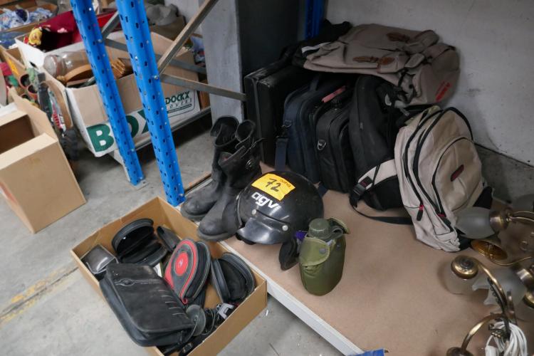 Diverse draagkoffers en rugzakken - Laarzen en jas HARLEY DAVIDSON - valhelm - opbergtasjes