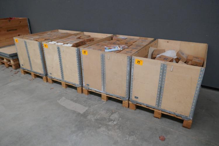 5 houten palletboxen met inhoud : Glasverf of porseleinverf diverse kleuren - merk, GARE