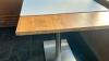 3 restauranttafels , inox voet, blad van notelaar. Blad 80x120, bladhoogte 75cm